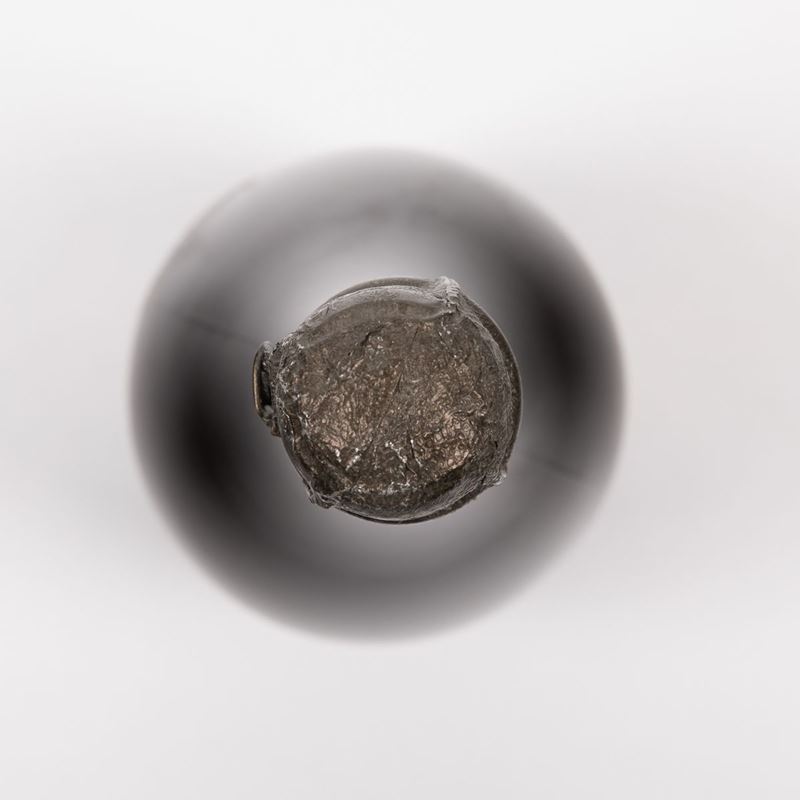 etichetta con segni d'usura del tempo e capsula danneggiata