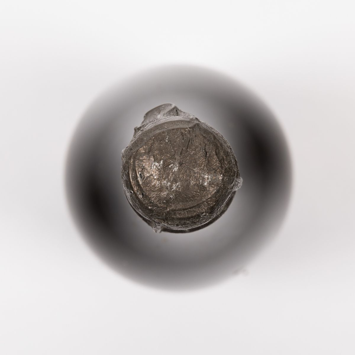 etichetta con segni d'usura del tempo e capsula danneggiata