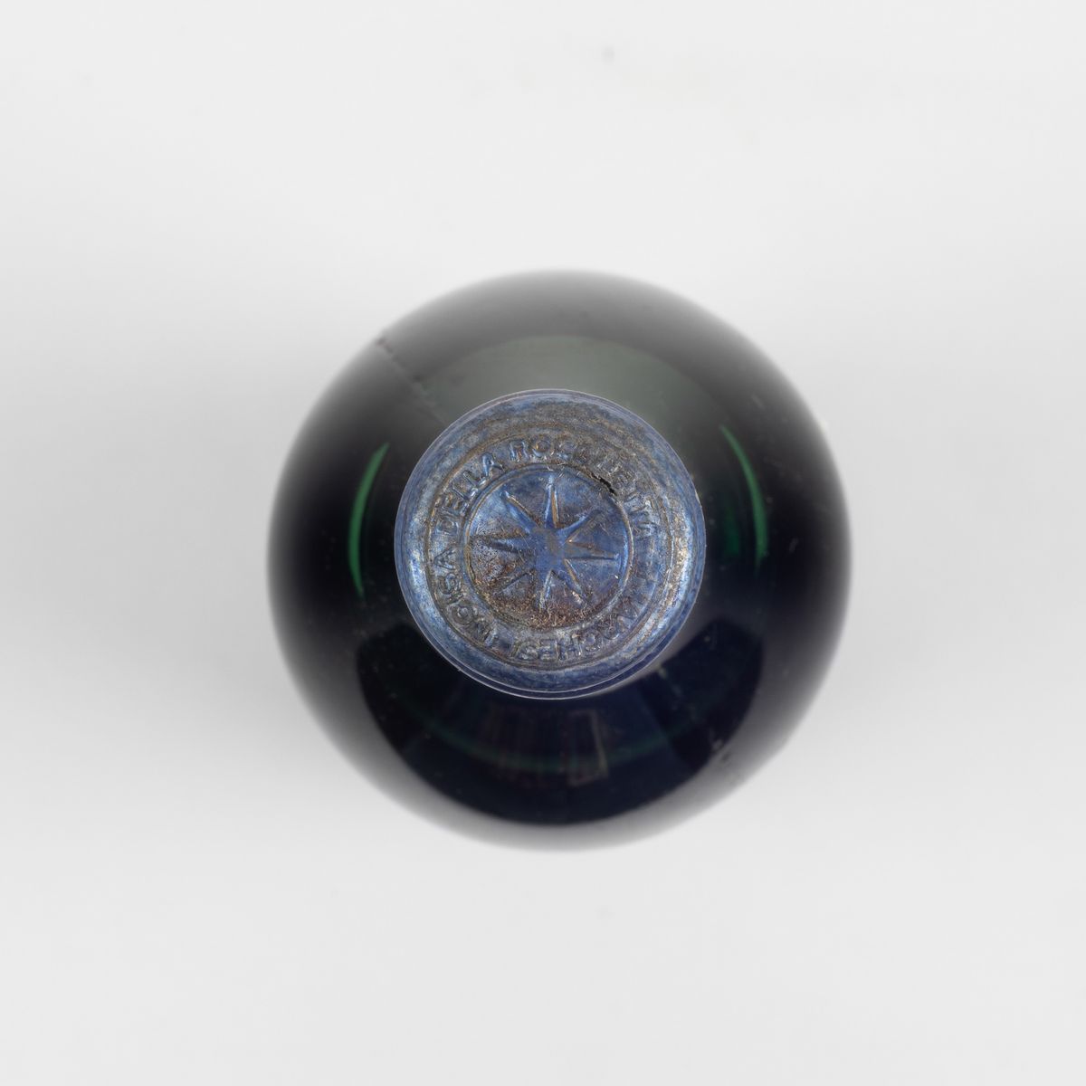 etichetta con segni d'usura del tempo e capsula danneggiata
