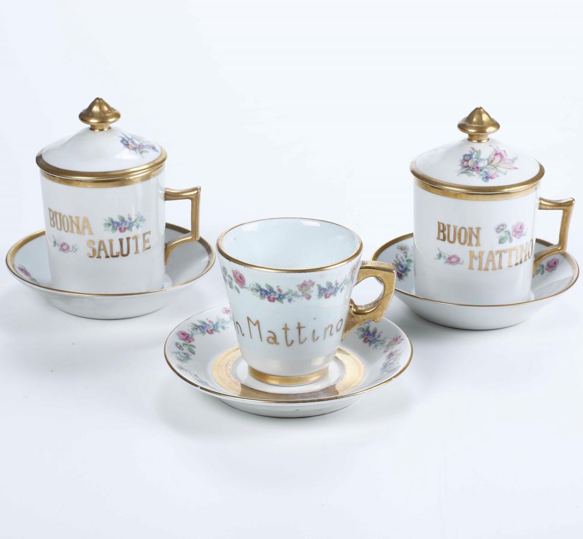 Tre tazze augurali Manifatture diverse, XX secolo