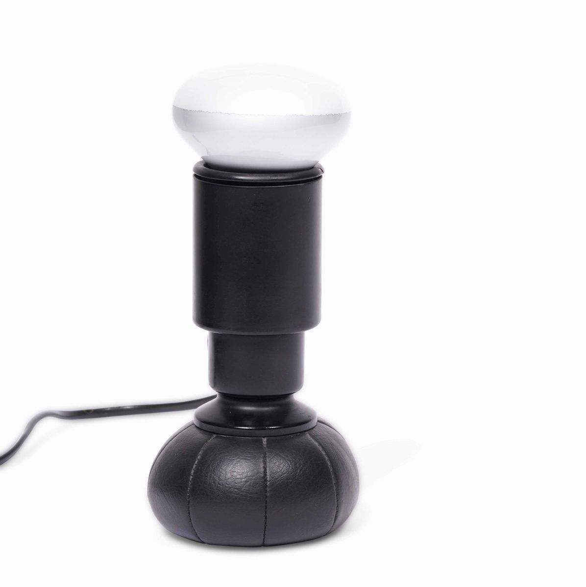 Lampada da tavolo orientabile mod. 600/g con struttura in alluminio laccato e base in skai con imbottitura in pallini di piombo.