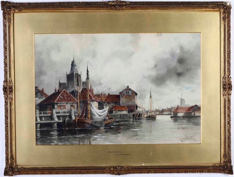 Louis van Staaten (1836-1909) Villaggio sul canale Near a Rotterdam e Scorcio con mulino