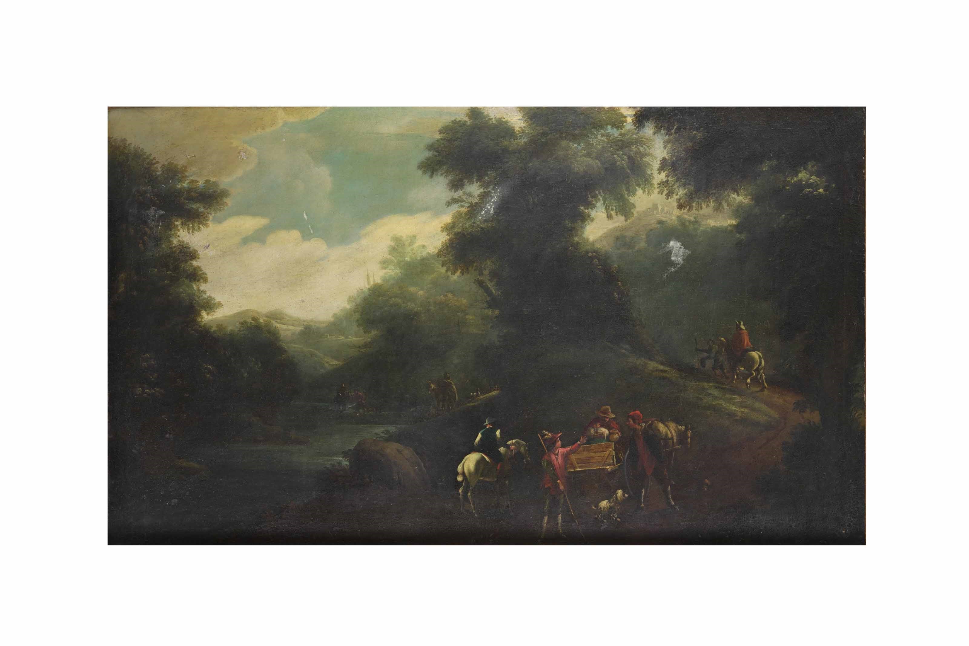 Scuola del XVIII secolo Paesaggio con contadini e viandanti