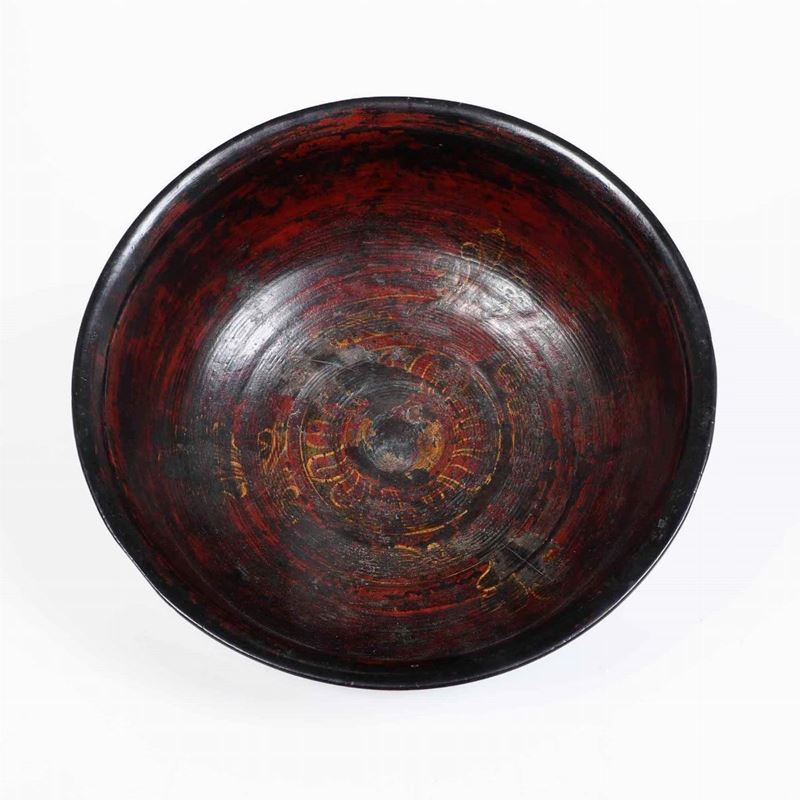 Ciotola in lacca con decori rossi su fondo nero. Cina, XX secolo