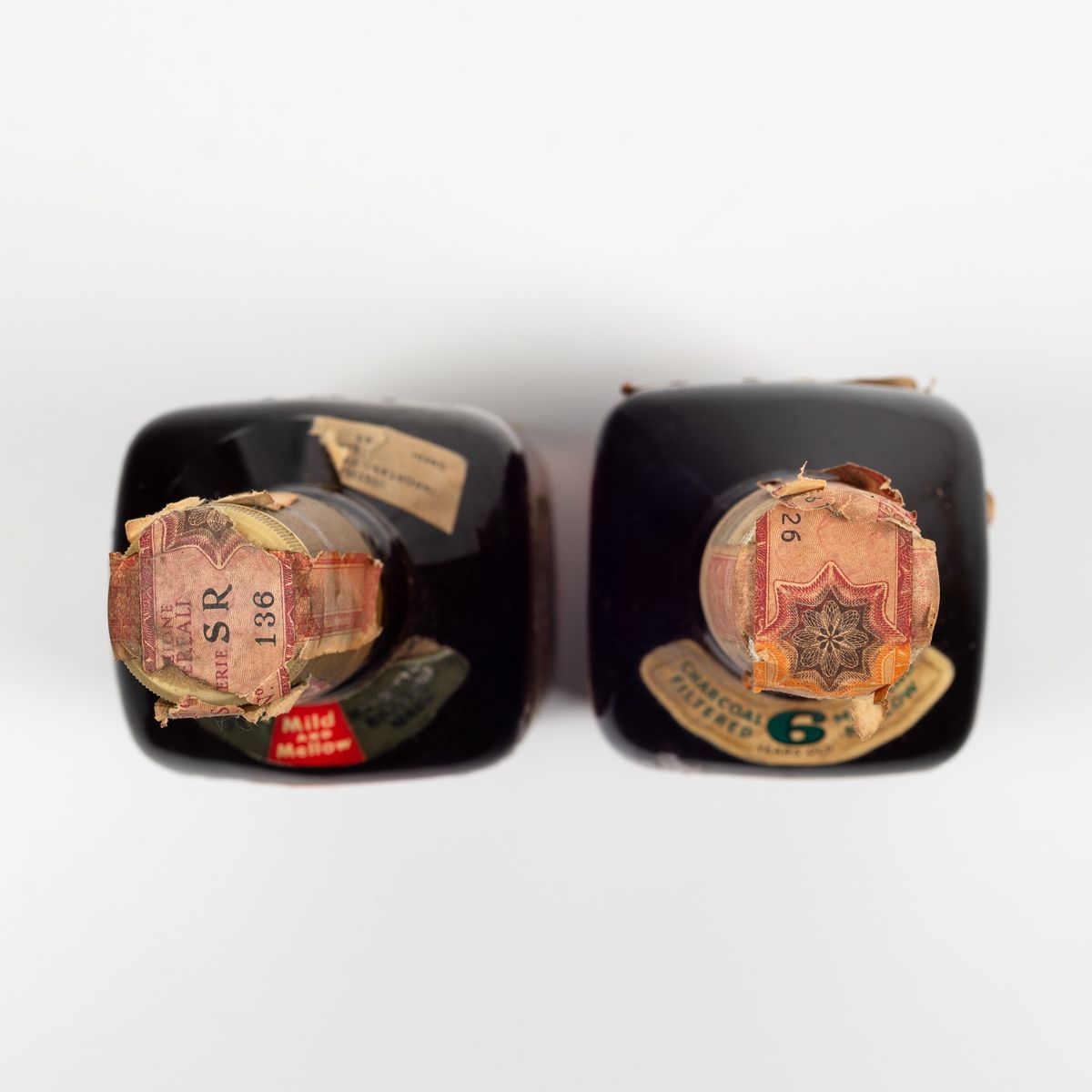etichette e capsule con segni d'usura del tempo