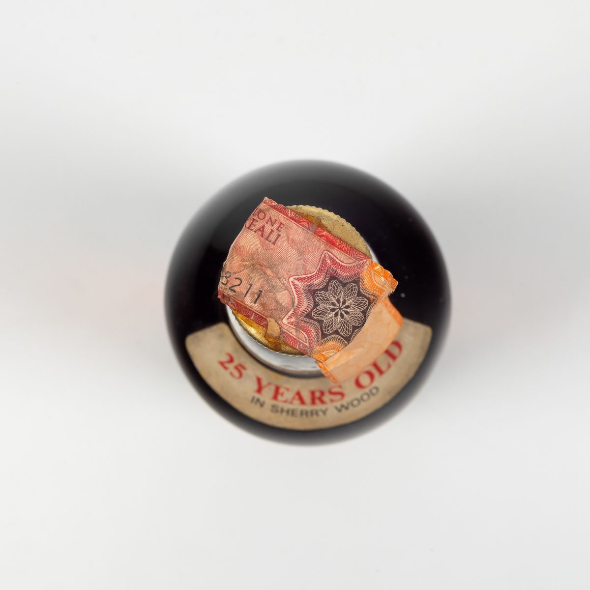 etichetta e capsula con segni d'usura del tempo