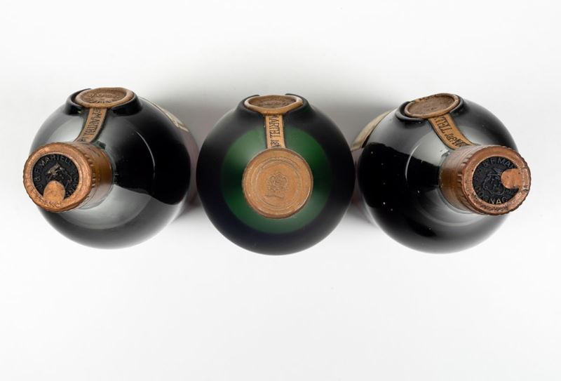 due bottiglie risalenti agli anni 60 e una bottiglia risalente agli anni 70