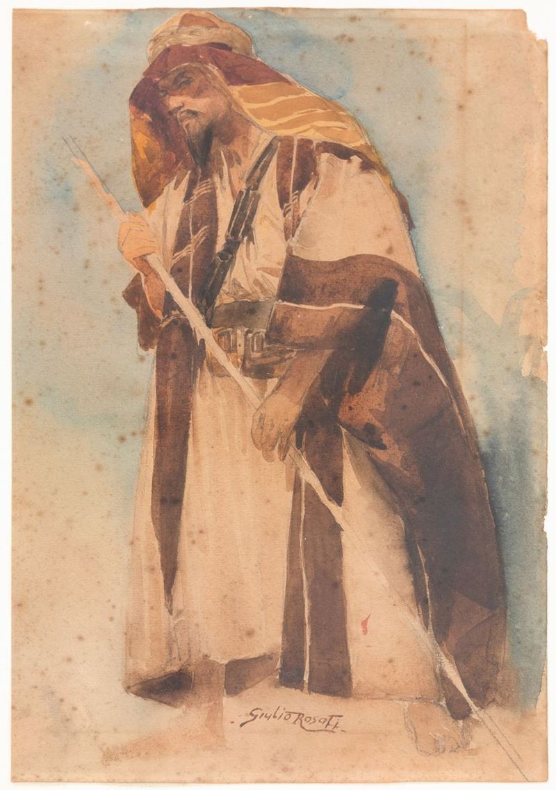 coppia di acquerelli su carta, firmati in basso