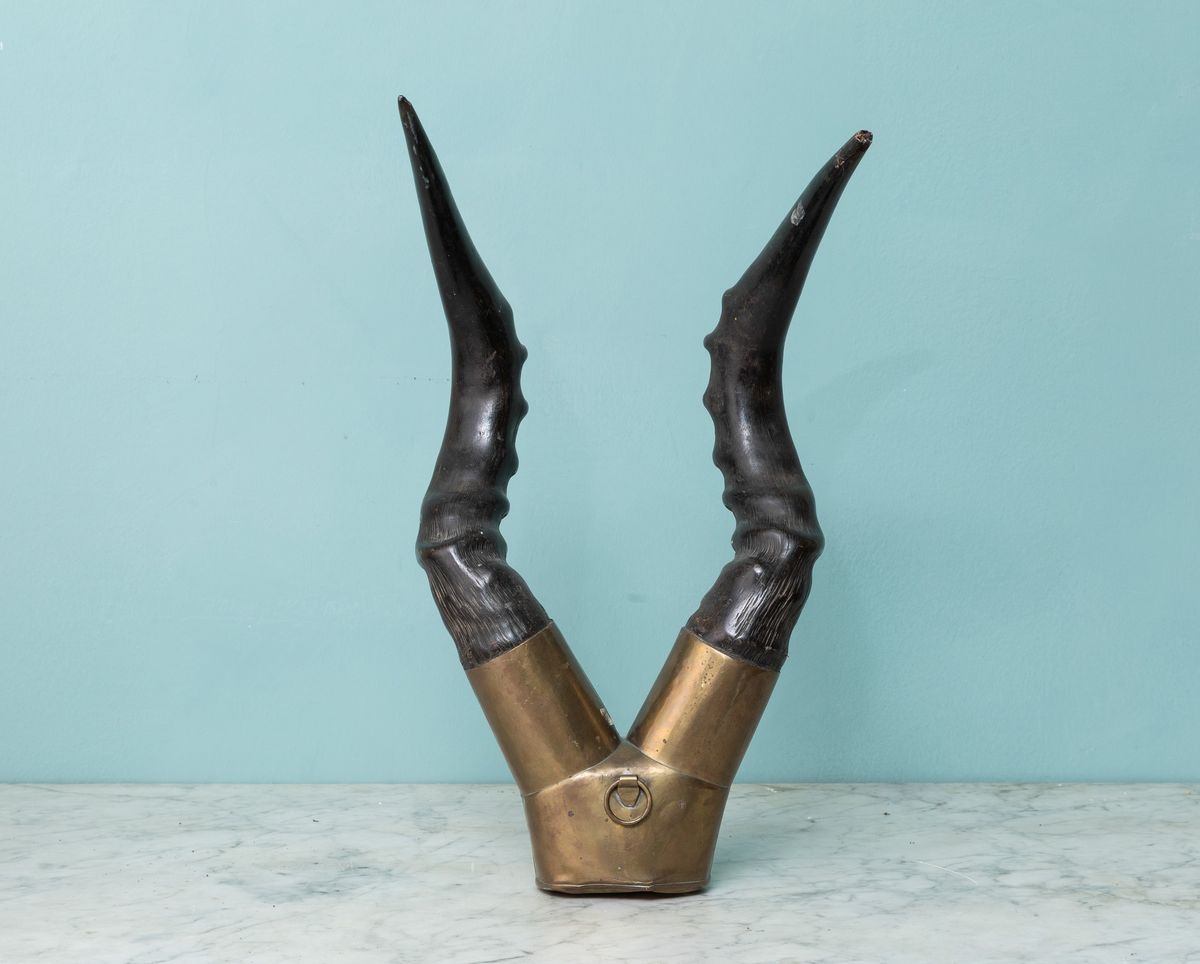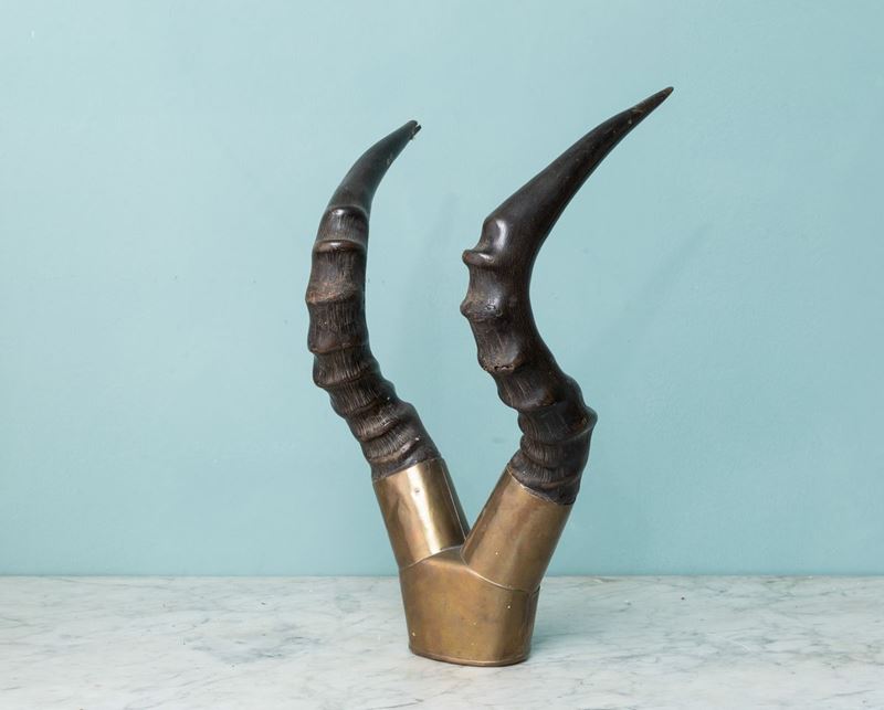 Composizione con corna di Alcelafo (Alcelaphus buselaphus) montate in ottone