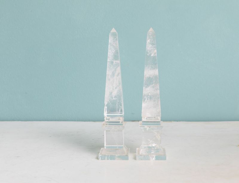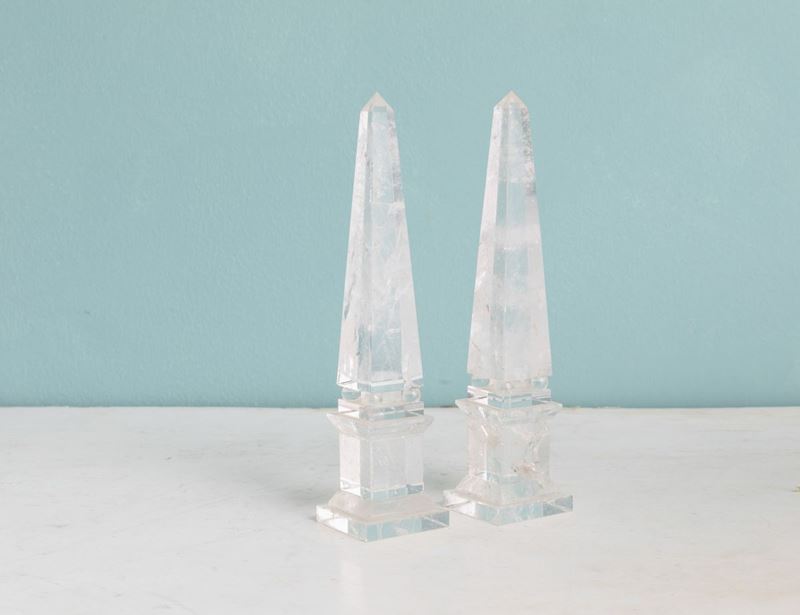 Coppia di obelischi in cristallo di rocca. XX secolo