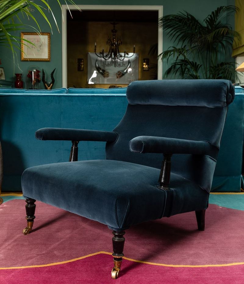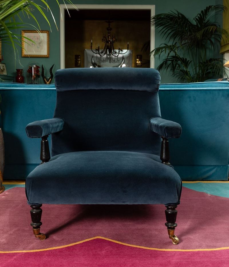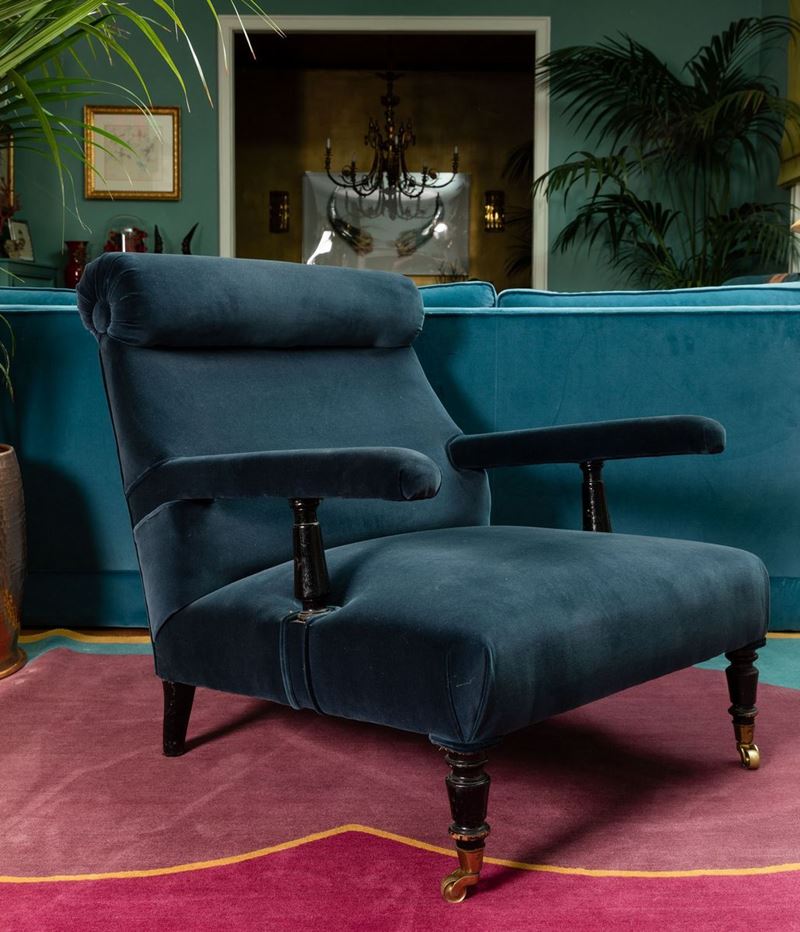 Coppia di poltrone in legno ebanizzato. Inizio XX secolo