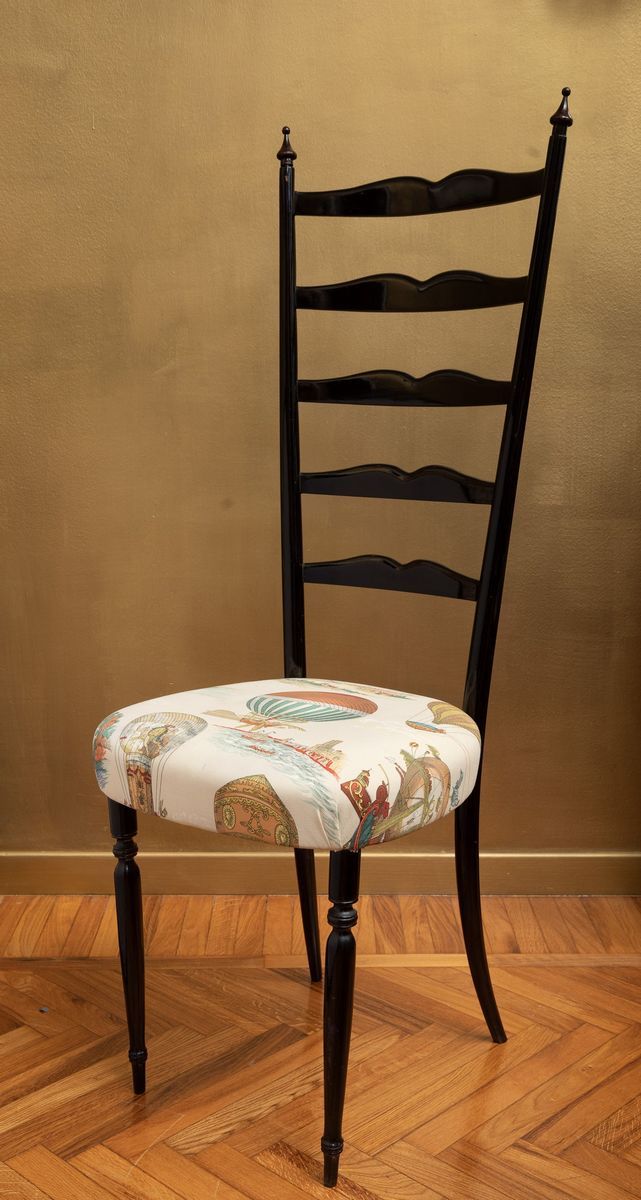 Coppia di sedie stile chiavarine rivestite con tessuto Pierre Frey