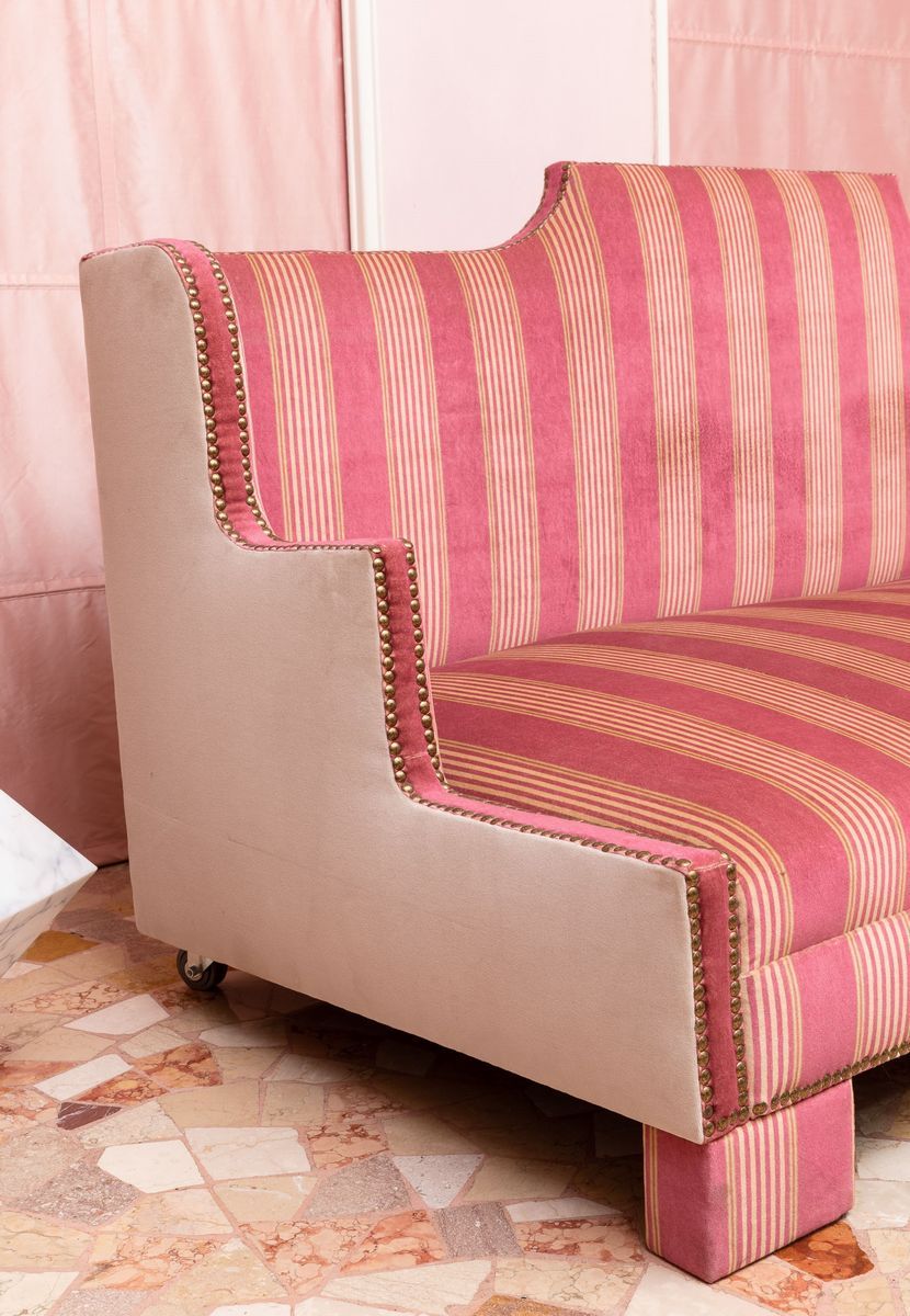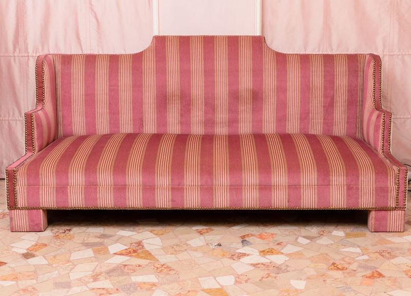 Divano a tre posti rivestito in tessuto a righe. XX secolo