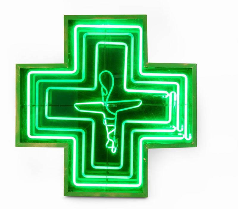 Insegna pubblicitaria bifacciale al neon , anni’80.