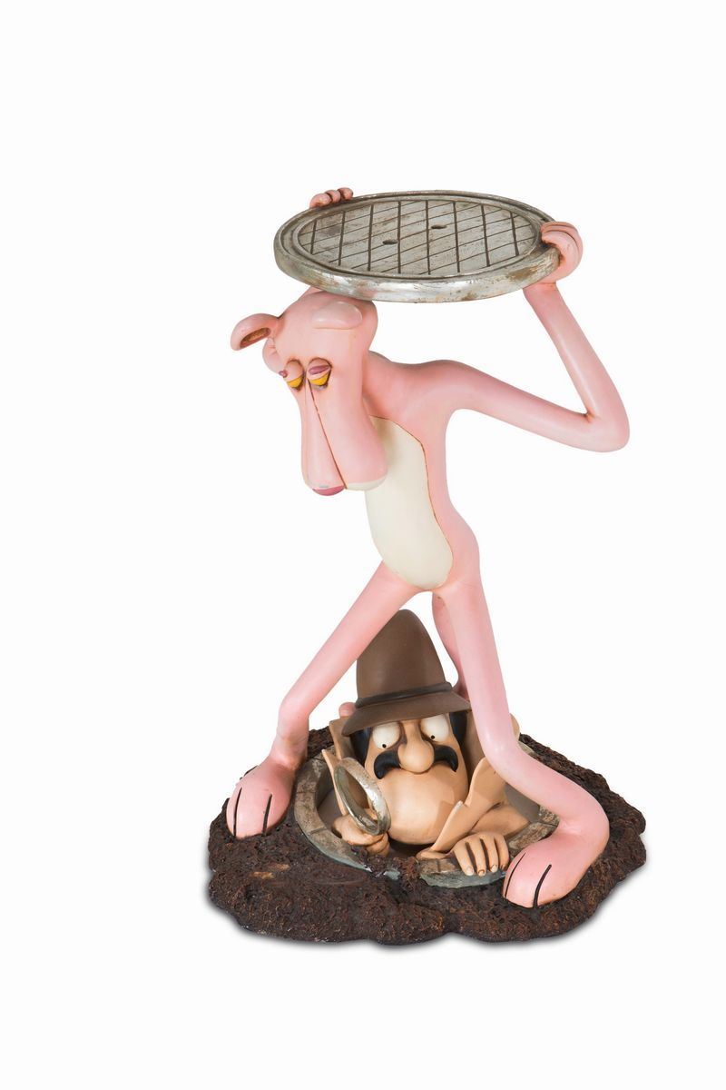 Statua Pantera Rosa e ispettore Clouseau con vassoio