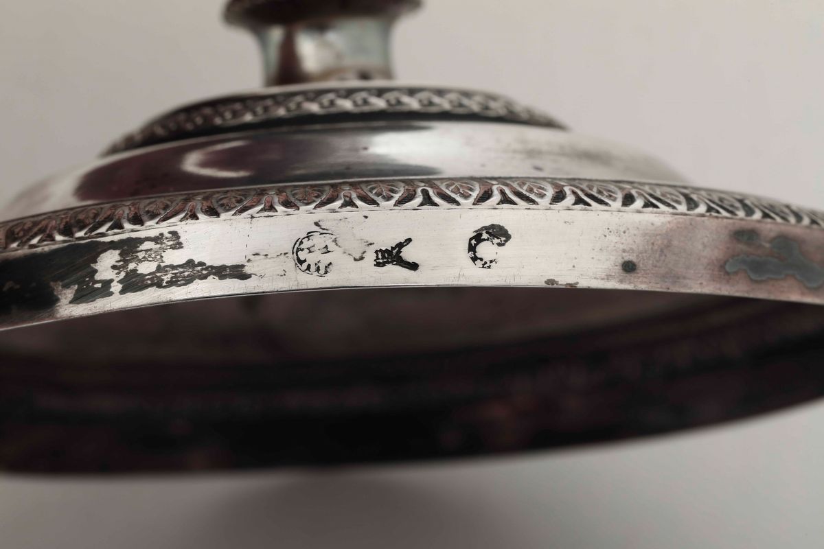 Coppia di candelieri in argento fuso e cesellato. Argenteria lombardo-veneta del XIX secolo