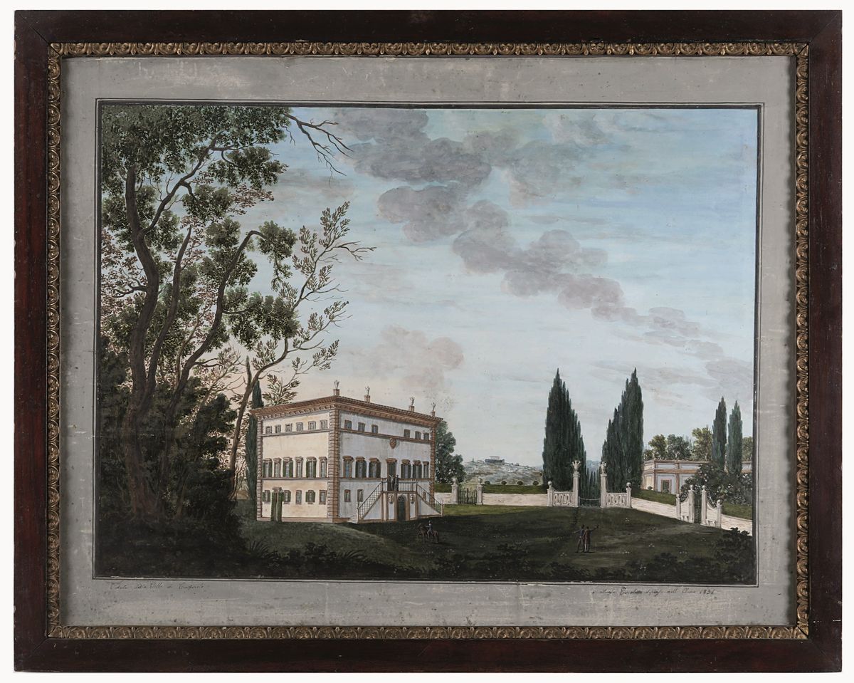Due gouaches raffiguranti "Veduta della villa di Copercino" datata 1836 e "Caverna marina"