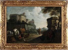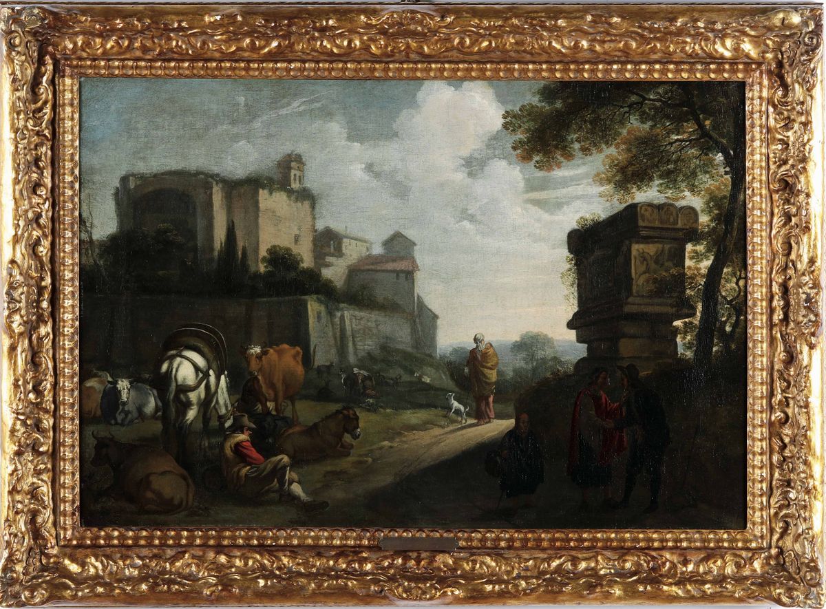 Paesaggio con ruderi e scena pastorale