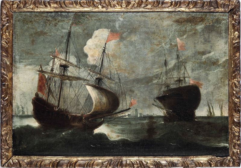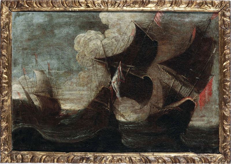 sei dipinti in cornici coeve in legno intagliato e dorato