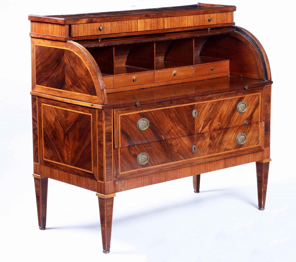 Bureau a rullo interamente lastronato ed intarsiato, fine XVIII secolo