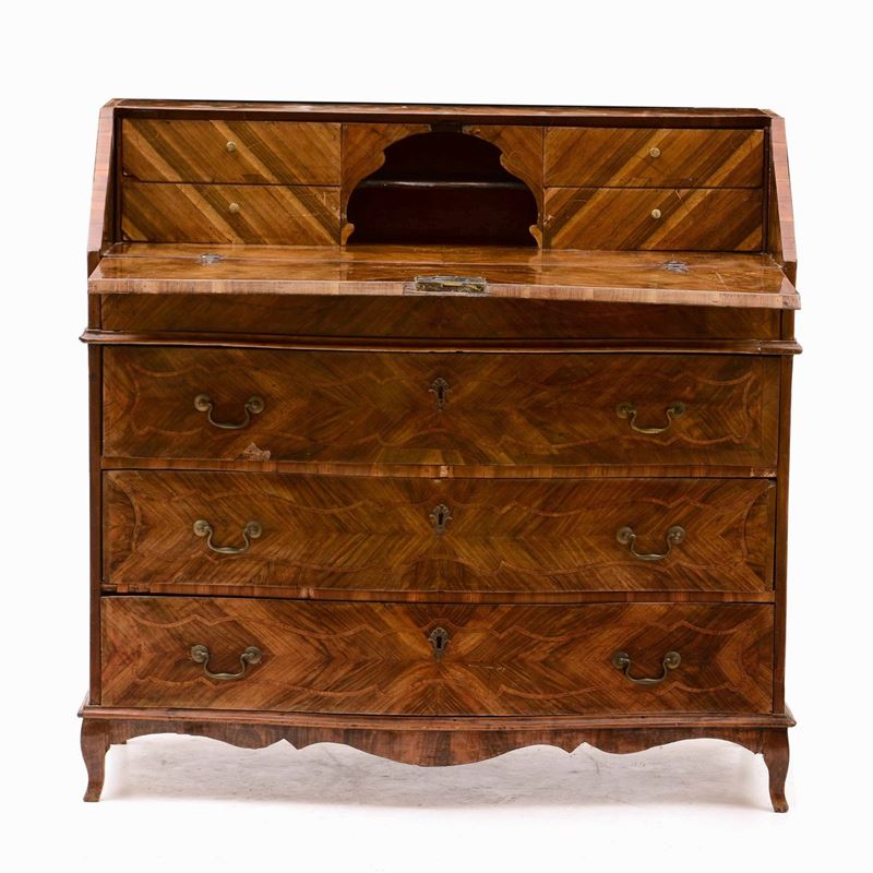 Ribalta a tre cassetti lastronata ed intarsiata, XIX secolo