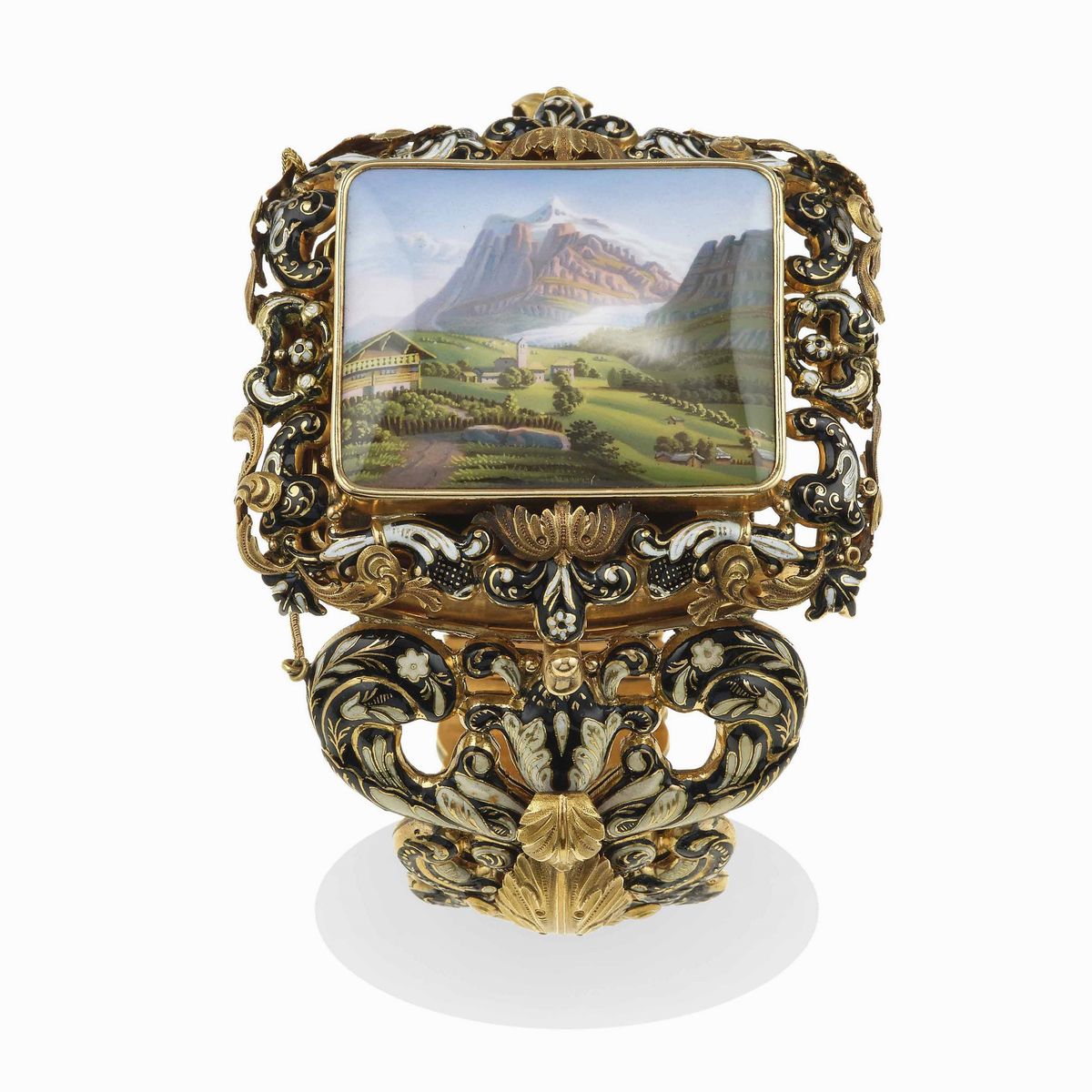 montatura in oro giallo 750/1000 con smalti bianchi e neri