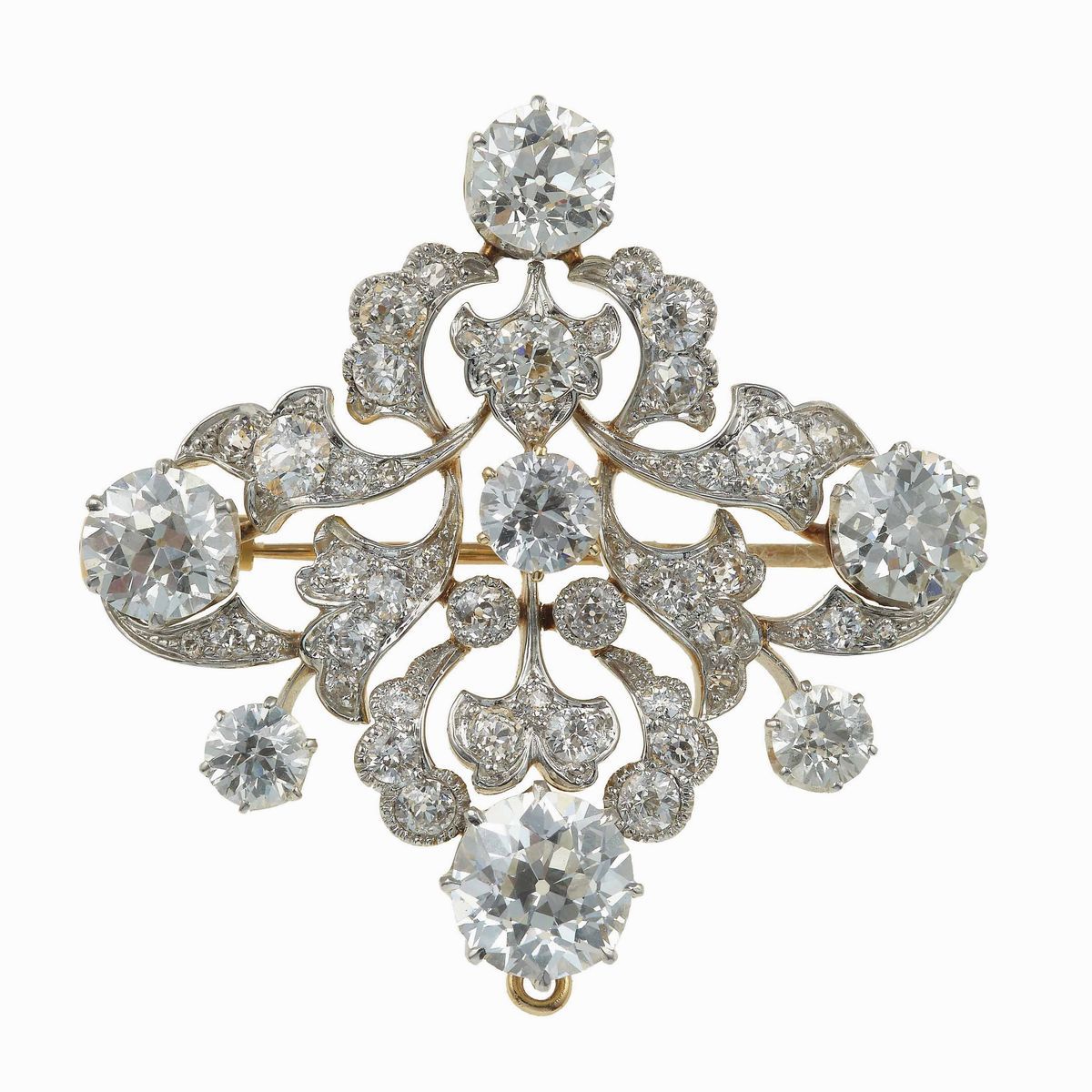 Kirkpatrick. Spilla con diamanti di vecchio taglio per ct 7.00 circa