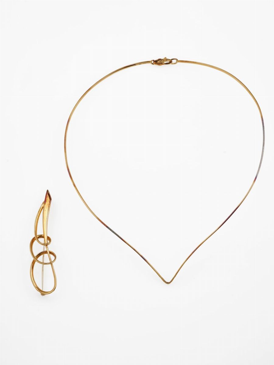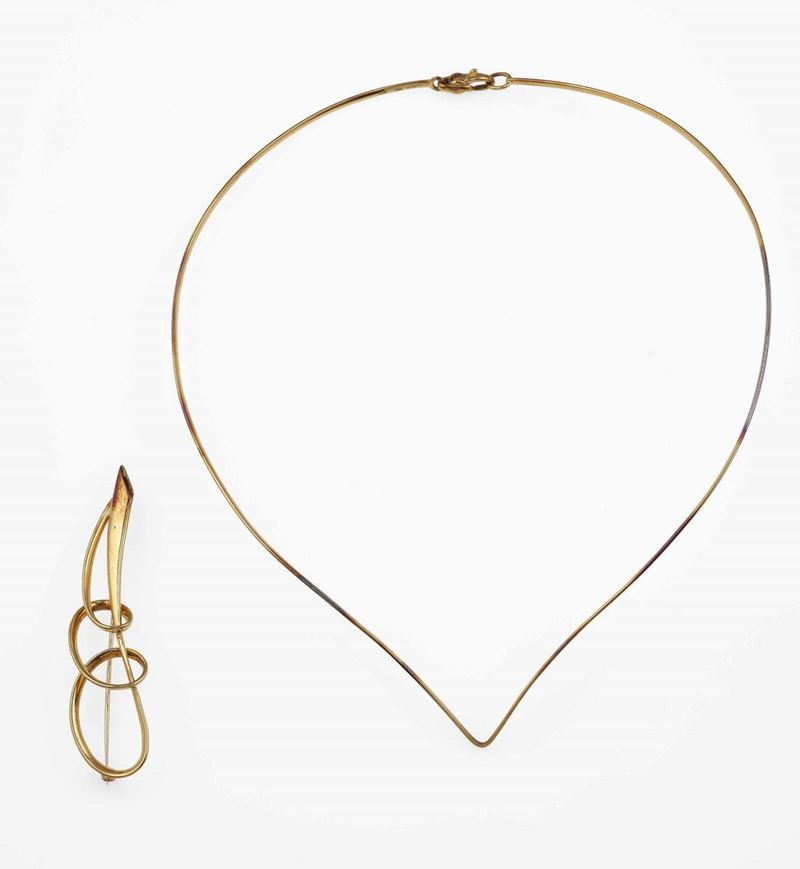 Scavia. Lotto composto da due girocolli, un bracciale, due spille ed un orecchino con piccoli diamanti