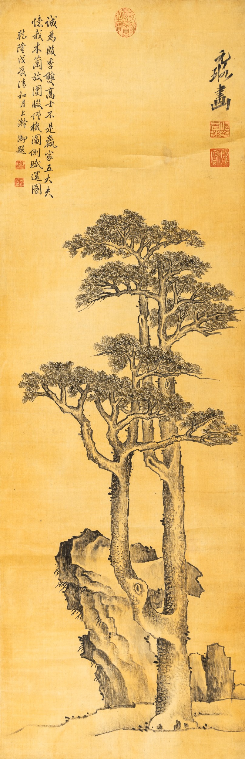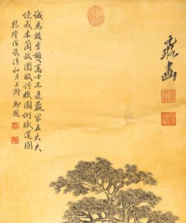 Dipinto su seta raffigurante paesaggio con iscrizione e sigillo, Cina, Dinastia Qing, XIX secolo