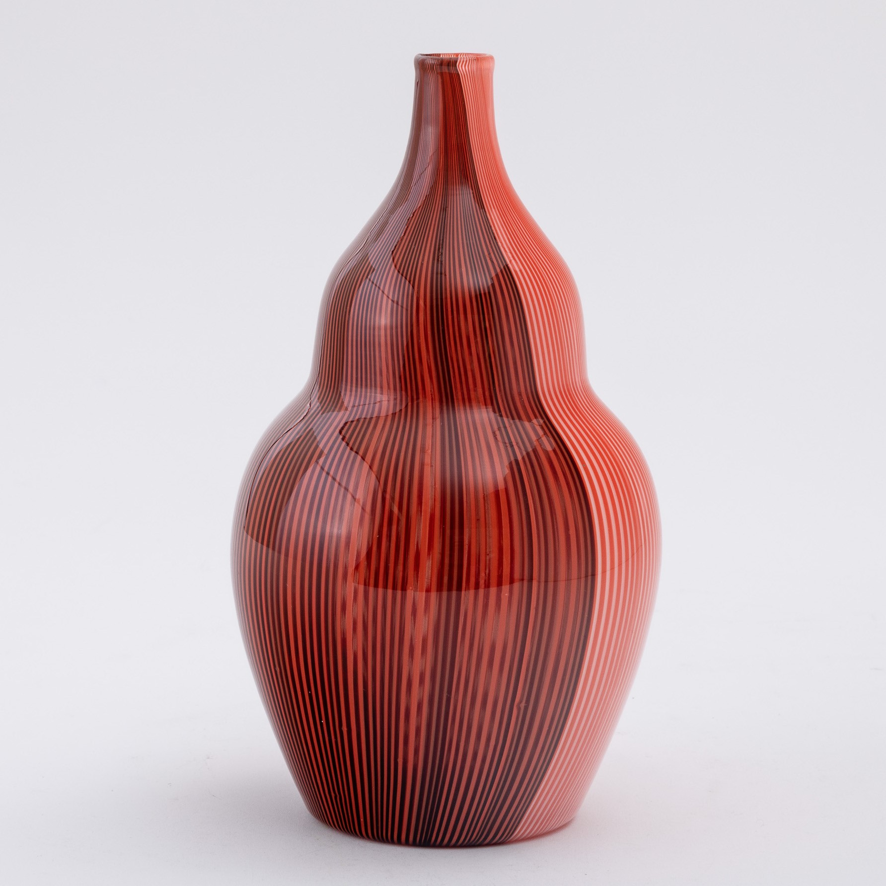 Vaso serie Tessuti in vetro soffiato con decoro di sottili canne policrome.