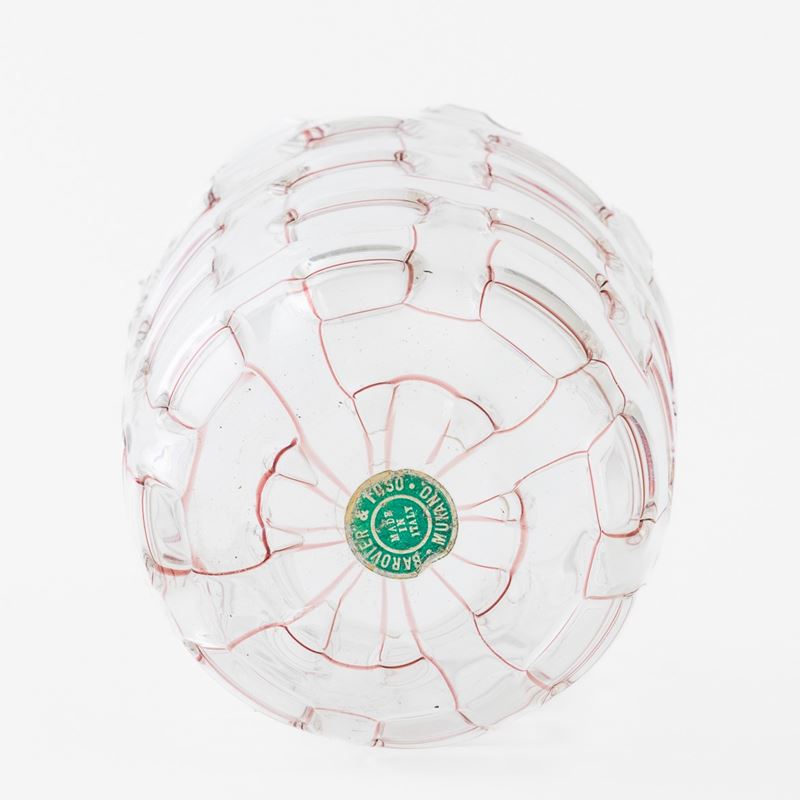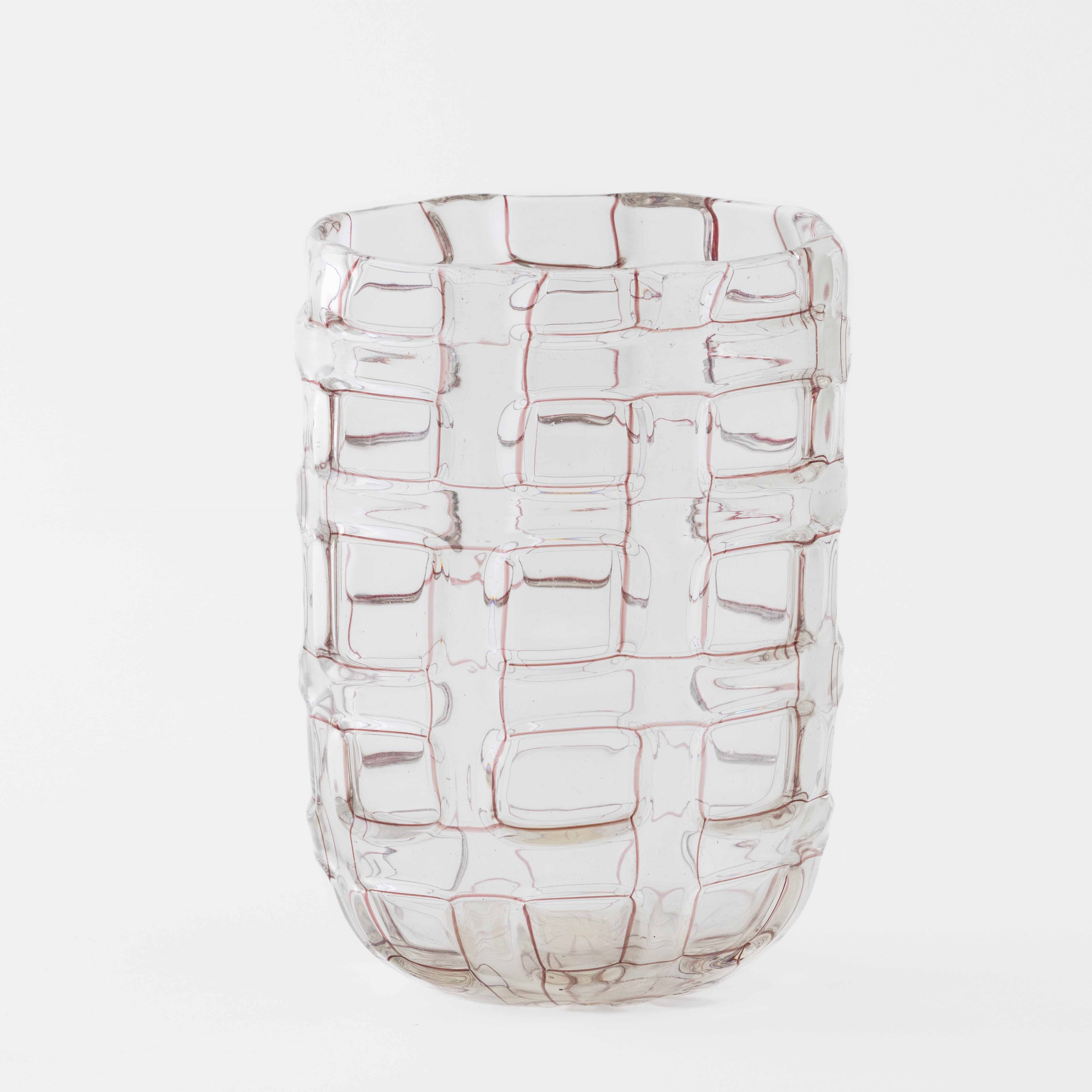 Vaso serie Argo in vetro soffiato con decoro di canne rosate.