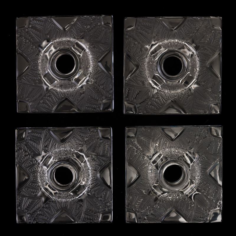 Lotto formato da quattro candelieri modello Chantilly a base troncoconica con decoro di festone inciso e sabbiato.