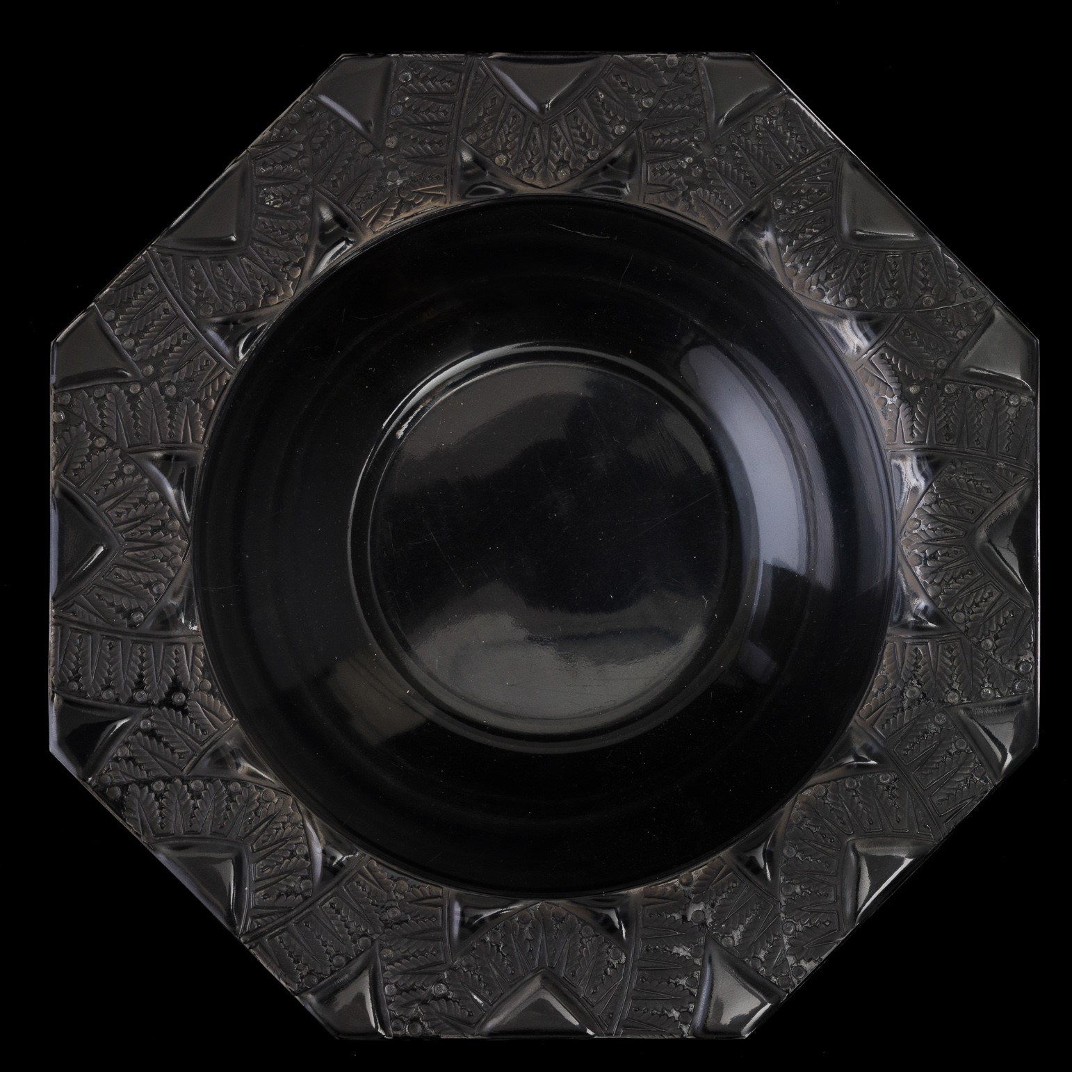Coppa modello Chantilly con tesa ottagonale in cristallo soffiato e decoro di festone inciso e sabbiato.