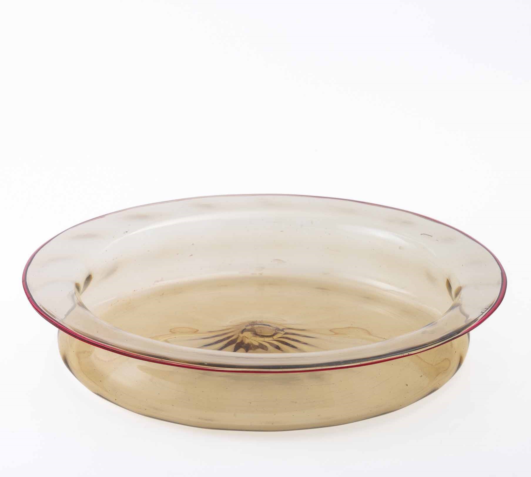 Ciotola con bordo ripiegato in vetro paglierino.