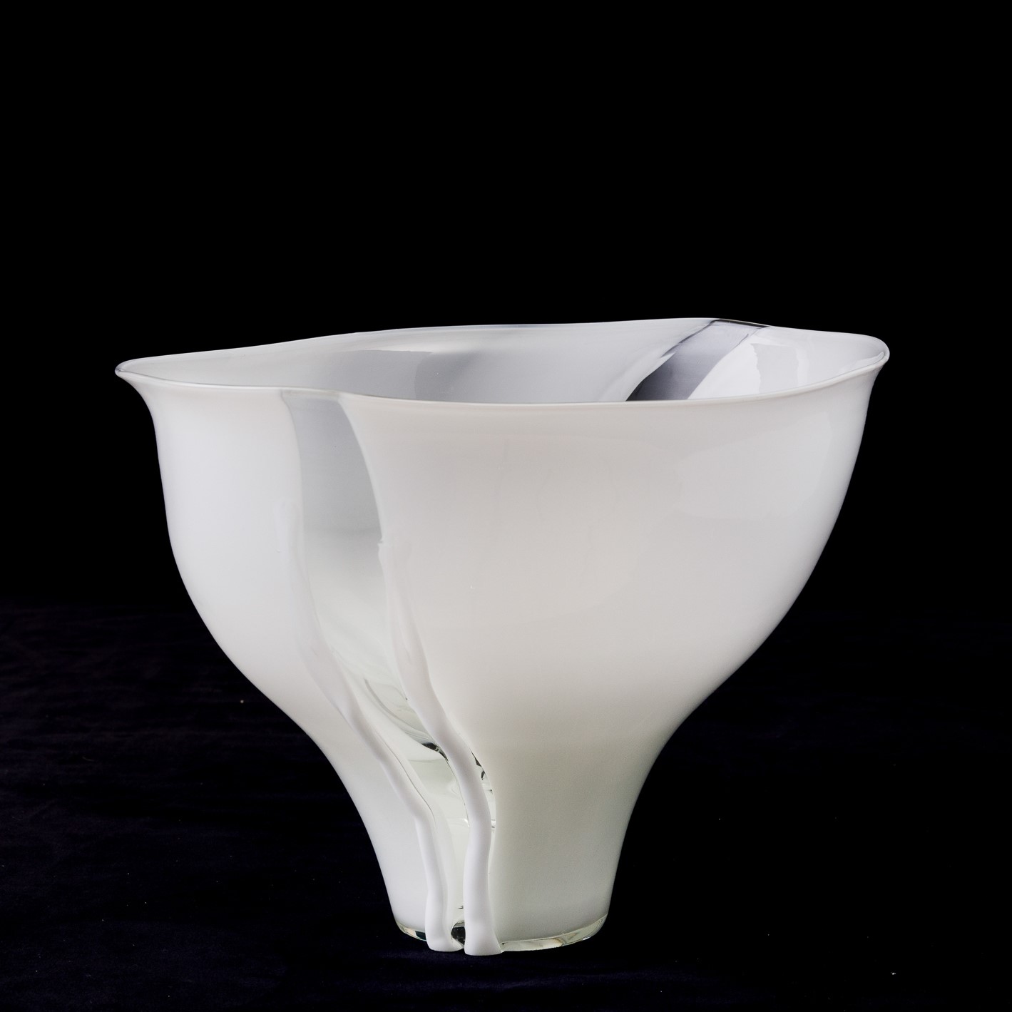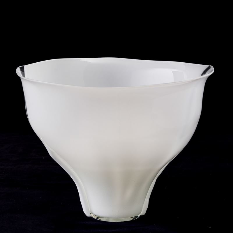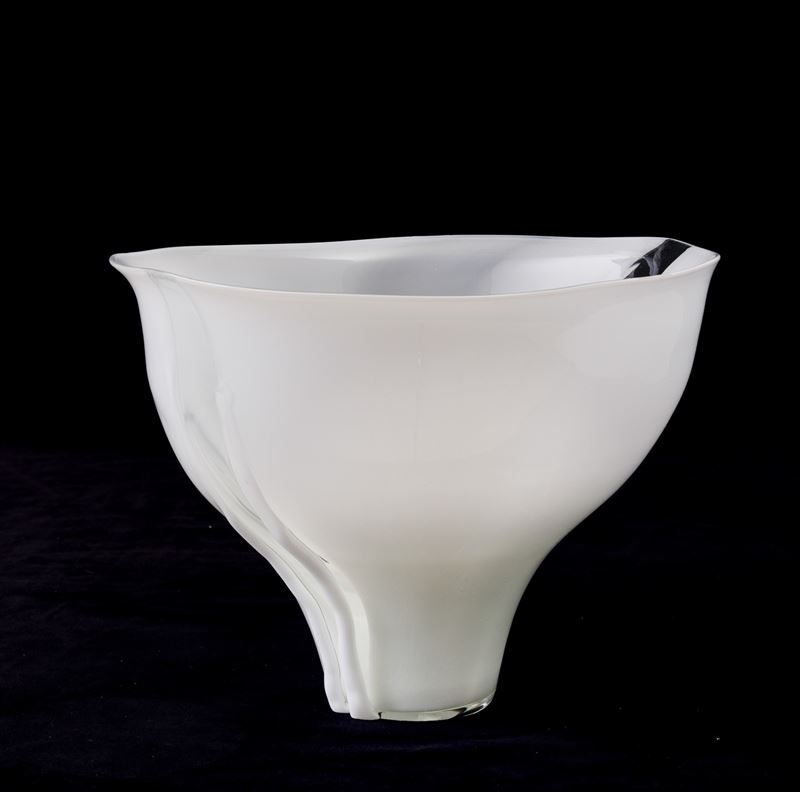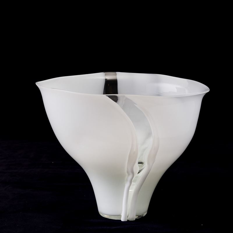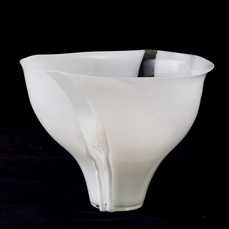 Coppa serie Scolpiti in vetro lattimo con fasce trasparenti e applicazioni.
