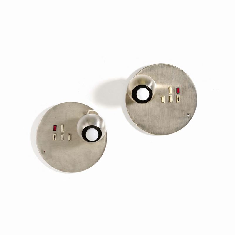 Struttura in ottone nichelato. Piastra a parete con interruttori in materiale plastico.
