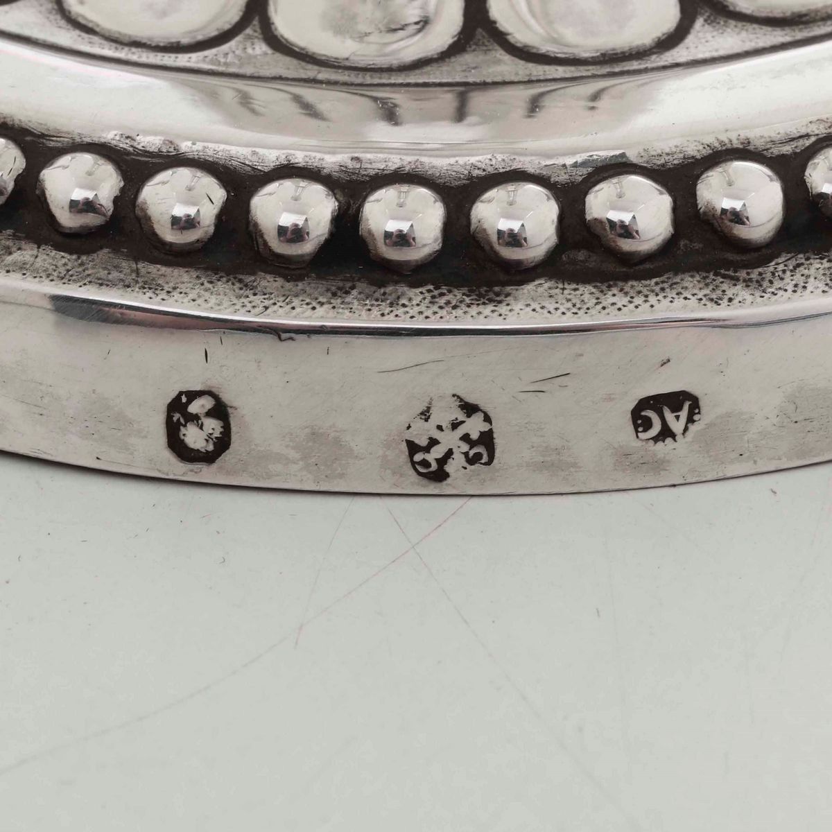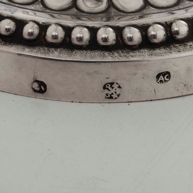 Coppia di candelieri. Argento fuso, sbalzato e cesellato. Roma inizio XIX secolo. Argentiere AC (non identificato)