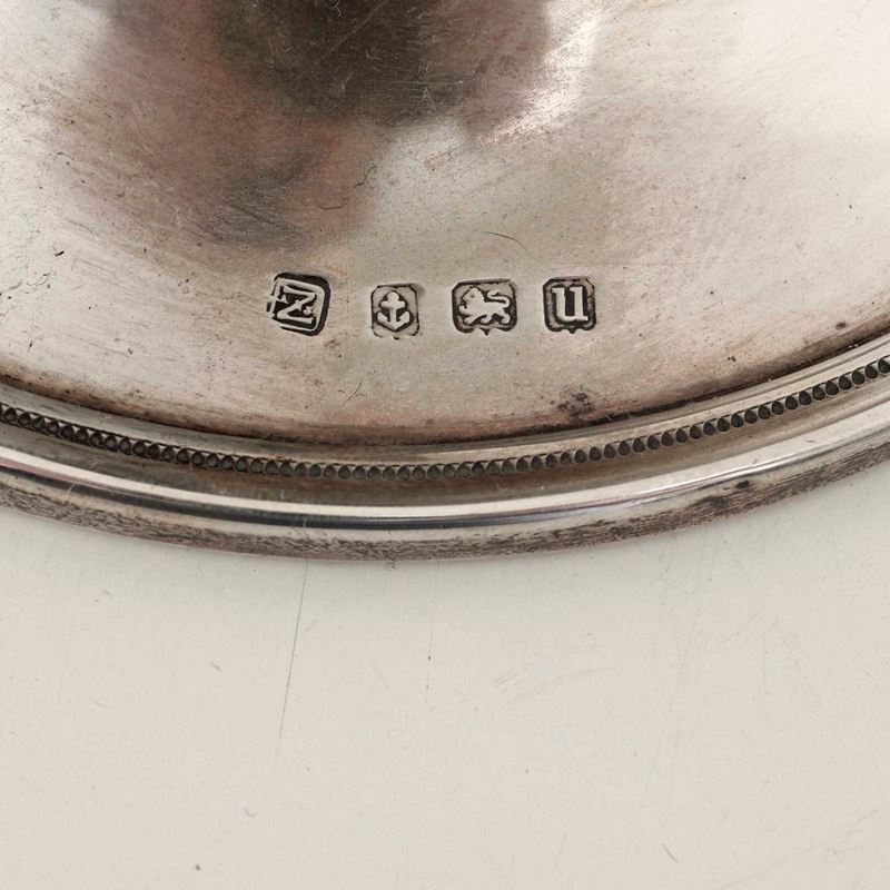 Due calamai. Argento fuso e sagomato. Uno Birmingham 1911, argentiere Henry Williamson Ldt. e uno Birmingham 1919 (bollo dell’argentiere parziale di difficile lettura)