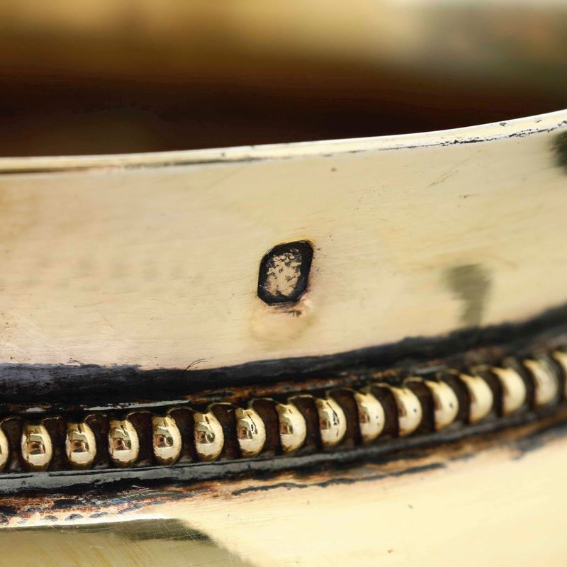 Due tazze con piatto. Argento primo titolo fuso, sbalzato, cesellato e dorato. Parigi marchi in uso dal 1798 al 1809. Marchio dell’argentiere non identificato