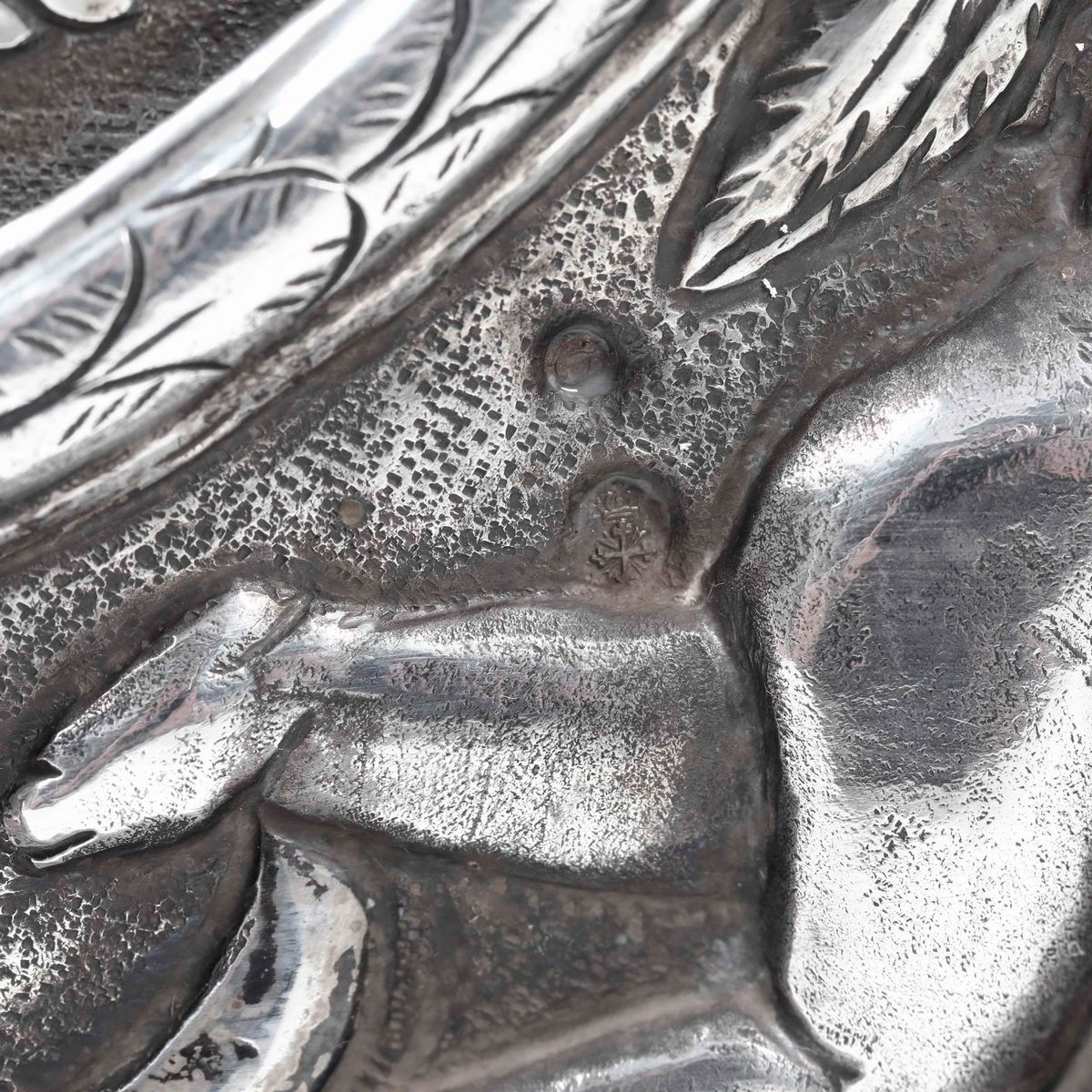 Sacra Famiglia. Placca in argento sbalzato e cesellato. Genova XIX secolo, marchi con croce mauriziana e delfino
