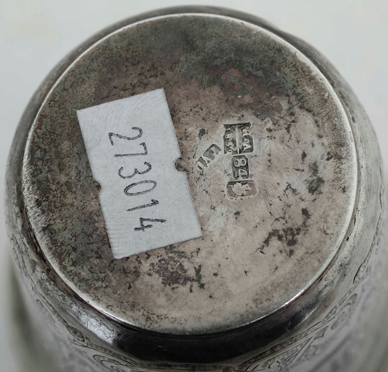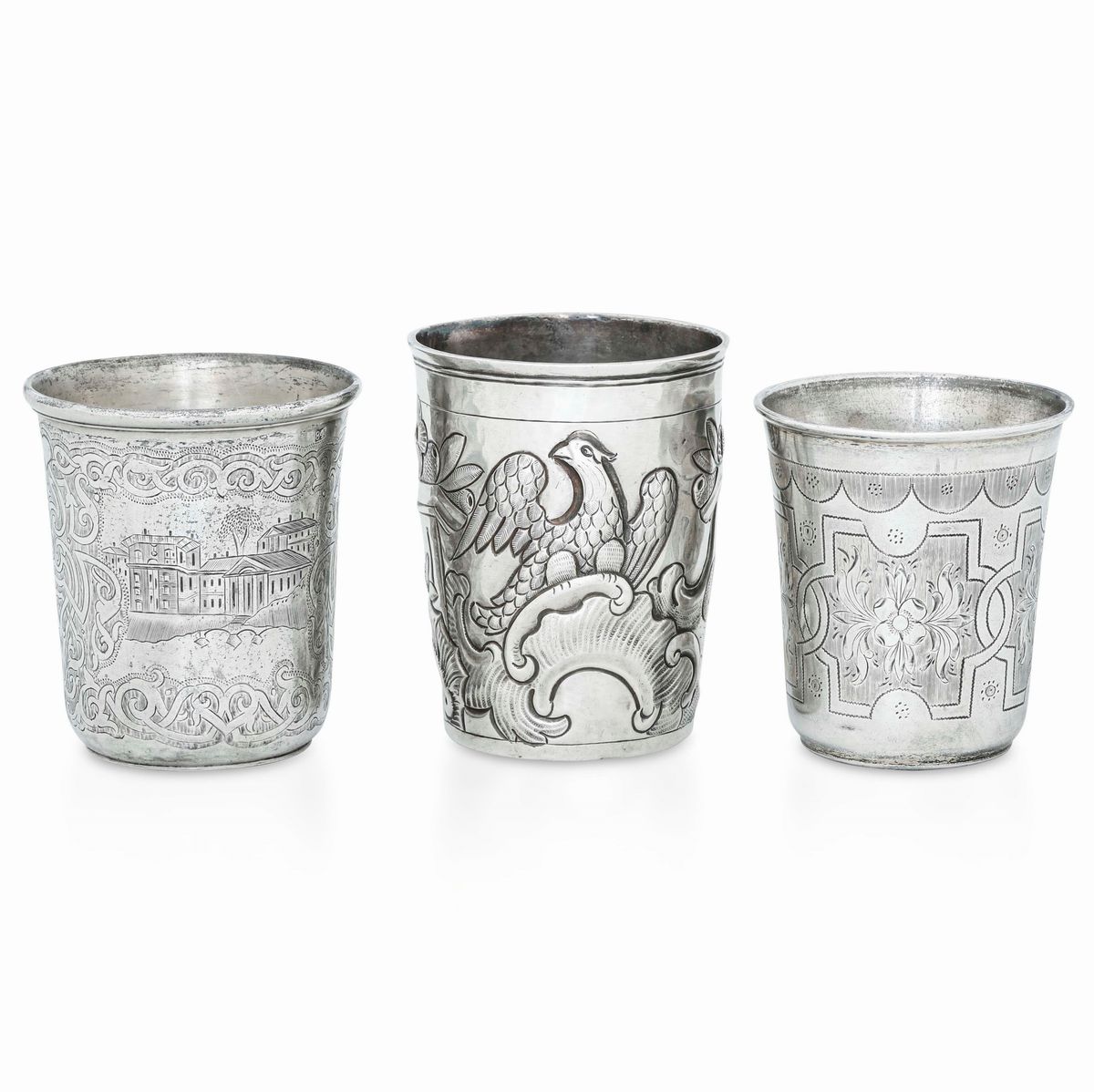 Tre bicchieri. Argento fuso, sbalzato e cesellato. Mosca XVIII-XIX secolo