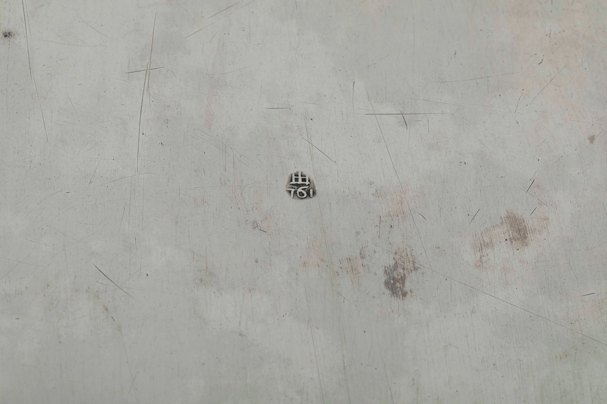 Vassoio. Argento fuso, sbalzato e cesellato. Genova 1761. Marchio della “Torretta” con datario (.761)