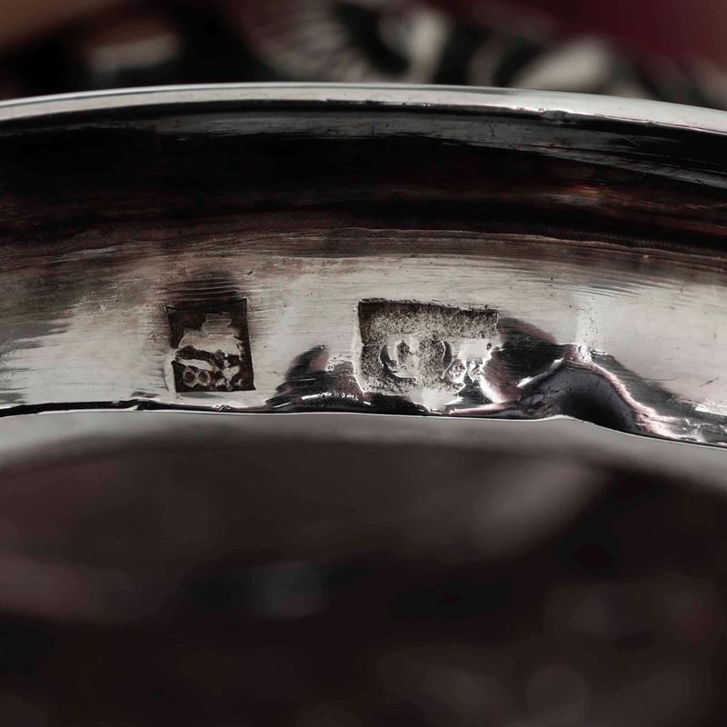 Zuccheriera. Argento fuso, sbalzato e cesellato. Napoli XIX secolo. Argentiere Gennaro Pane