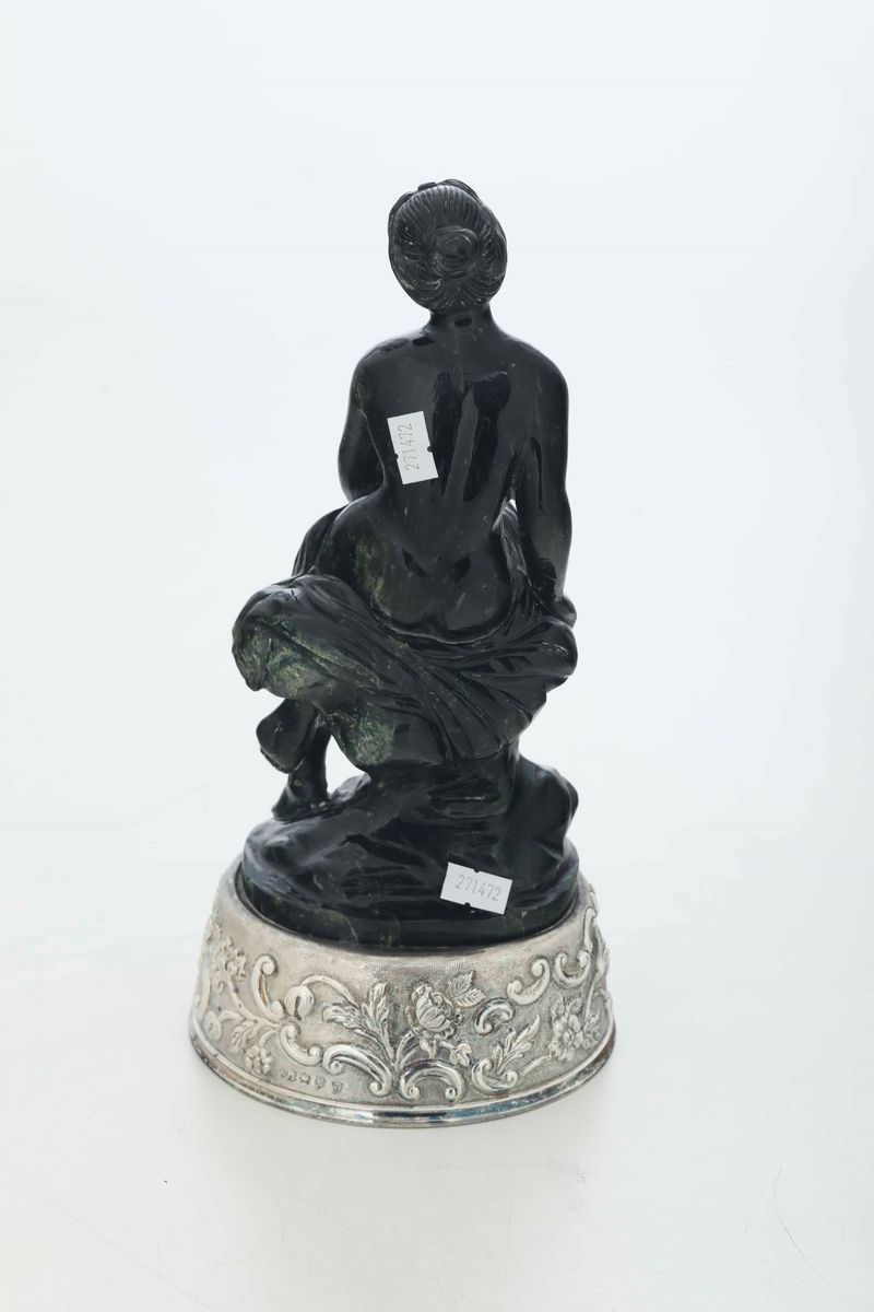 Ninfa. Giadeite e argento fuso, sbalzato e cesellato. Marchi ad imitazione dell’argenteria inglese(Hanau?) XIX-XX secolo
