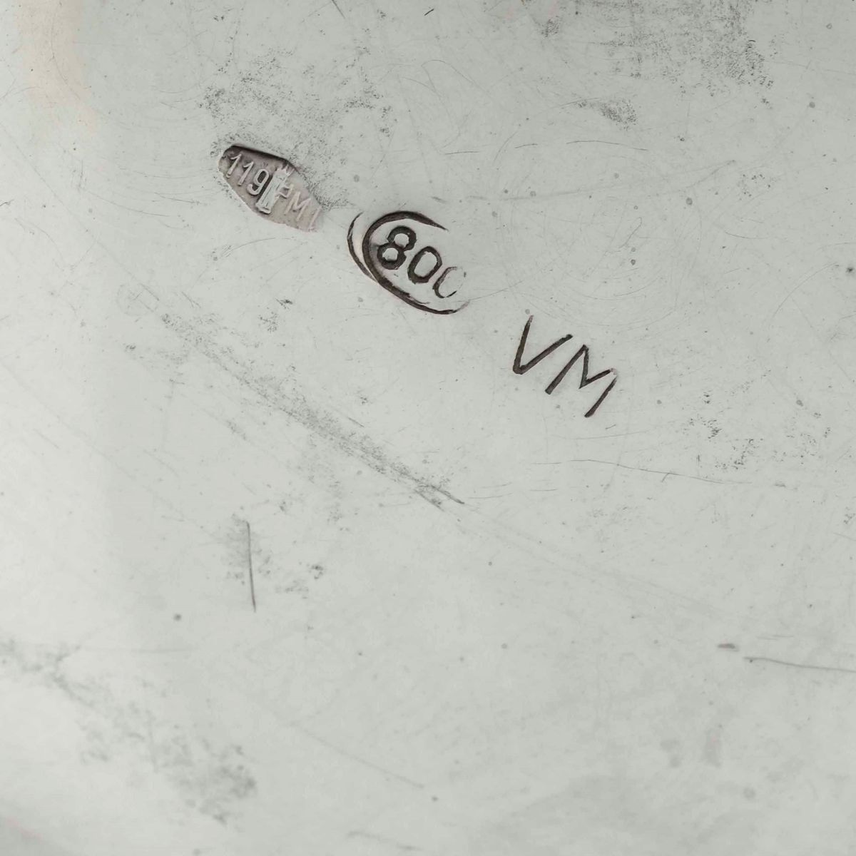 Servizio da tè e caffè. Argento fuso, sbalzato e legno sagomato. Argenteria artistica milanese del XX secolo. Marchio con fascio littorio in uso dal 1935 al 1945, argentiere Vittorio Muggia