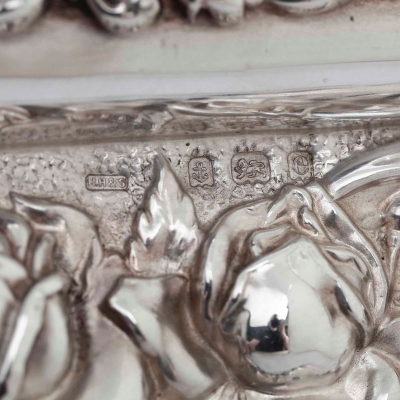 Vassoio porta posta. Argento fuso e sagomato. Birmingham 1904. Argentiere Henry Hubson & son