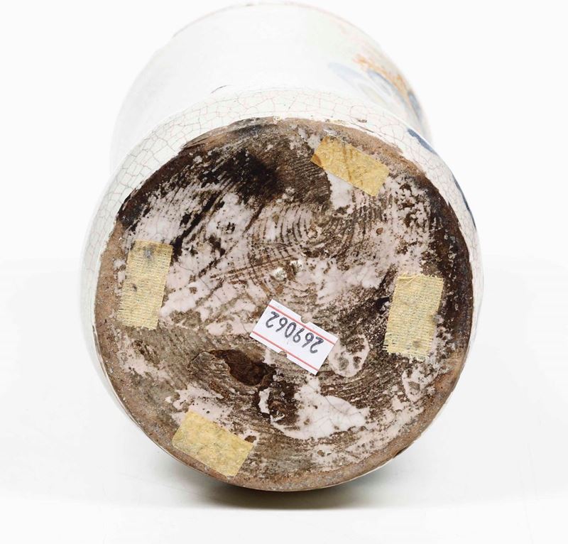 Maiolica policroma a gran fuoco. Altezza cm 27,5. Conservazione: ottima; piccole sbeccature ai bordi; craquelures