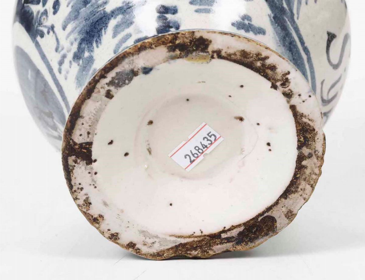 Maiolica. Marca: assente. Altezza cm 19. Conservazione: sbeccature ai bordi; insignificante felatura