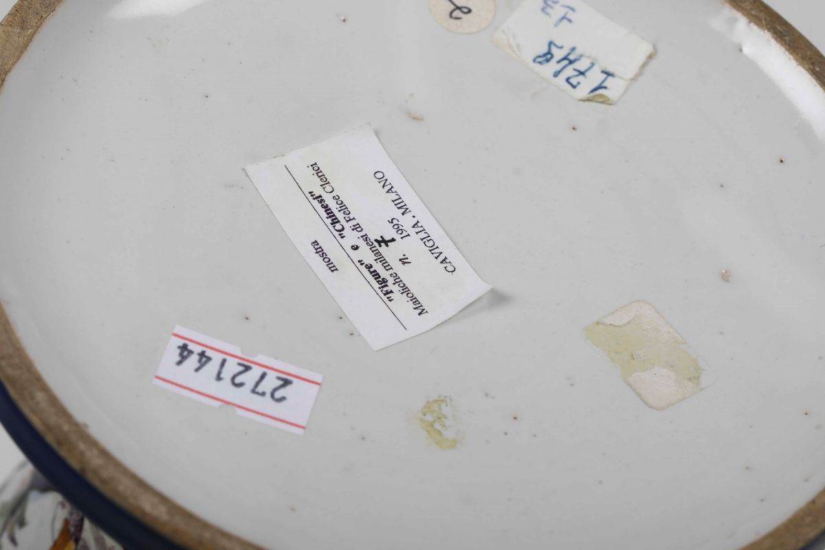 Questo vaso è stato esposto alla mostra dedicata a questa produzione artistica nel 1995 presso la Galleria Caviglia (cfr. R.Ausenda, “Figure e Chinesi”. Maioliche milanesi di Felice Clerici, Milano 1995, n. 7)