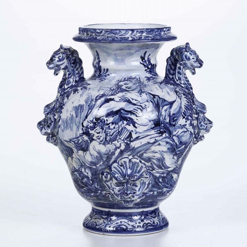 Maiolica in monocromia blu di cobalto. Altezza cm 28,5. Conservazione: ottima